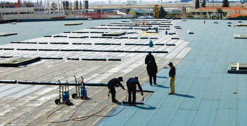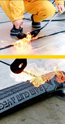 1-The surface to be covered must be so stable not to displace due to exertion of the probable weight pressures. Roofs must be covered with light concrete and finished with sand and cement mortar of at least 2 cm in thickness. Already asphalted surfaces do not need sand and cement mortar. 2- The surface to be covered with WPBS must be smooth, clean and dry 3-To increase the adhesion of the WPBS, the surface must be given a layer of primer and fast-drying pitch derivatives. 4-All surfaces must have a slope towards the drain pipe to prevent concentration of water in one area. The maximum recommended slope is 5% 5-Rolls of the WPBS must not be opened in adverse climate like rain, snow, and hail. Each roll of the WPBS must have an overlap of 7-10 cm and an off lap of 15 cm. Gas torch is used for affixing the rolls along their length and overlapping/off lapping parts are spliced with care so that a smooth surface is formed there.